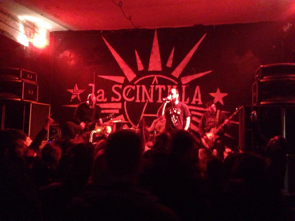 Arriviamo a La Scintilla dopo un viaggio infinito fra treni cancellati e coincidenze perse per questione di secondi. Nonostante le millemila peripezie, siamo carichi a molla per la serata che vedrà sul palco, del centro sociale anarchico modenese, Affluente, Contrasto, CGB, Ludd e Chiodi.