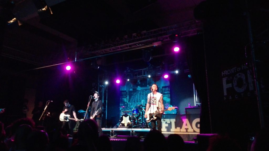 Ad un certo punto si interrompe, e nel buio salgono sul palco: la folla li acclama mentre loro salutano, con i sorrisi sulle labbra. Il loro set inizia con “When The Wall Falls”, si parte carichi. Nella scaletta anche altre canzoni del loro ultimo album, come “Racists” (dedicata a Mr. Donald Trump), “The Criminals”, “Trouble Follows Me” e “American Attraction”. Tra pugni chiusi, salti wow, pensieri antifascisti, encore con cambio di banner vengono suonati anche brani più datati, come “Die For Your Government”, “Drink Drank Punk”, “Fuck Police Brutality”, “Cities Burn” e un’inaspettata “Death Of A Nation” (che emozione!). Non mancano all’appello le popolari “This Is The End (For You My Friend)”, “1 Trillion Dollar$”, “The Press Corpse”, “I’d Tell You But..”. Mi aspettavo anche “This Machine Kills Fascists” che sfortunatamente non è stata suonata.. pazienza.