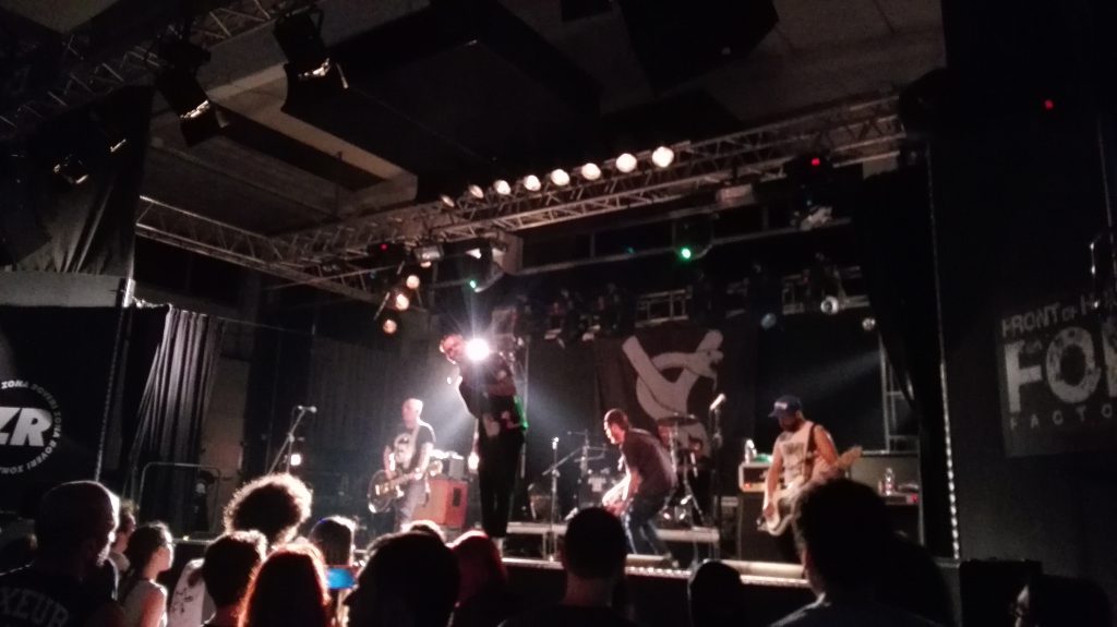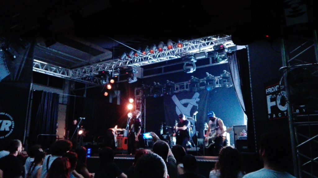 Ma mettiamo da parte la povertà e iniziamo a parlare del primo ed unico gruppo in apertura: alle 21.30 spaccate ecco che salgono sul palco i Second Youth. Sono sincera, non li avevo mai ascoltati e non sapevo nulla di loro se non il nome, ma devo dire che sono stati impeccabili! Il cantante, gran ‘gesticolatore’, era carichissimo e con le sue ‘mosse’ ha saputo intrattenere molto bene il pubblico (tra l’altro, correggetemi se sbaglio, ho scoperto essere cagliaritano, mi sento un po’ di parte, chapeau!). Pochissime pause tra queste canzoni molto punk-hc melodico, che parlano di ‘Venerdì sera’ e persino d’amore, vi ascolterò molto più approfonditamente. Bravissimi davvero, e complimenti al bassista cui ad un certo punto si è staccata la tracolla ed è caduto il basso, sei stato pronto e non ti sei fermato, daje!
