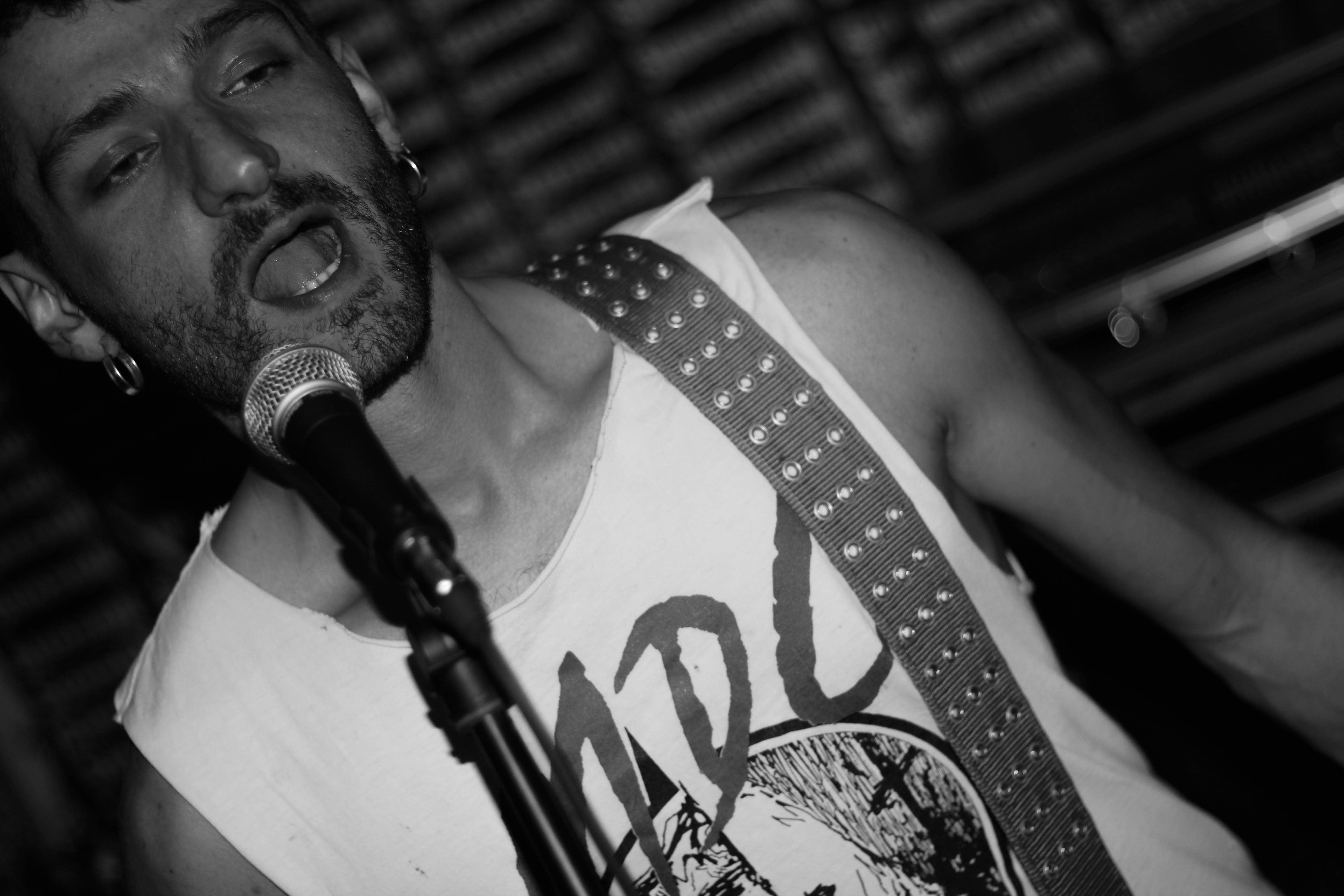 Prima dell’inizio delle ostilità, si tiene la presentazione di un libro, L’Asfalto Sulla Pelle di Gennaro Shamano. Narra storie e situazioni della grande stagione delle occupazioni negli anni ’90, di frustrazione, droga, autogestione. Parla di strade, della vita negli squat e delle frizioni con tutto il resto del mondo. Non diluisce i concetti. Non se ne cura, li serve freddi, e come una nonna sta in piedi a fissarti finché non hai pulito il piatto, guardandoti dritto negli occhi. La crudezza dei racconti e dell’esposizione ben si sposa con ciò che sta per avvenire, visto che immediatamente dopo aver rimosso le sedie veniamo investiti dal clangore degli Overcharge. Corde unte di sudore e olio per motori ci sferzano il volto, carburate da una sezione ritmica ossessiva, martellante; veniamo scaraventati in un vortice di visoni post apocalittiche, acciaio e lamiere, polvere e acre odore di benzina. Ancora storditi, come da un cocktail fatto male, ecco che arriva il secondo giro. I Radsters! Uno squadrone della morte armato di Speedrock, che ci sbatte arrogantemente in faccia il nuovo materiale del loro ultimissimo disco Faster Than Police. Pentatoniche moltiplicate a velocità irragionevoli e canzoni anfetaminiche, urlate in faccia fino a quando reggono i polmoni. Fortunatamente l’edificio risulta solido, perché i Radsters hanno seriamente rischiato di raderlo al suolo, alzando vertiginosamente la temperatura. È la volta dei Motron, che stasera presentano il loro nuovo album Who’ll Stop The Rain. Quello che in gergo si definirebbe un super gruppo, in quanto consta di membri provenienti da altrettanti nomi illustri del panorama underground – Campus Sterminii, Miseria, Pioggia Nera e altri – che propongono un monolitico crust/d-beat, cupo e gutturale. Incapace di pietà come un superpredatore, il vecchio son è inclemente, non ha ancora finito con noi, complici le innumerevoli birre e un non precisato numero di Borghetti.