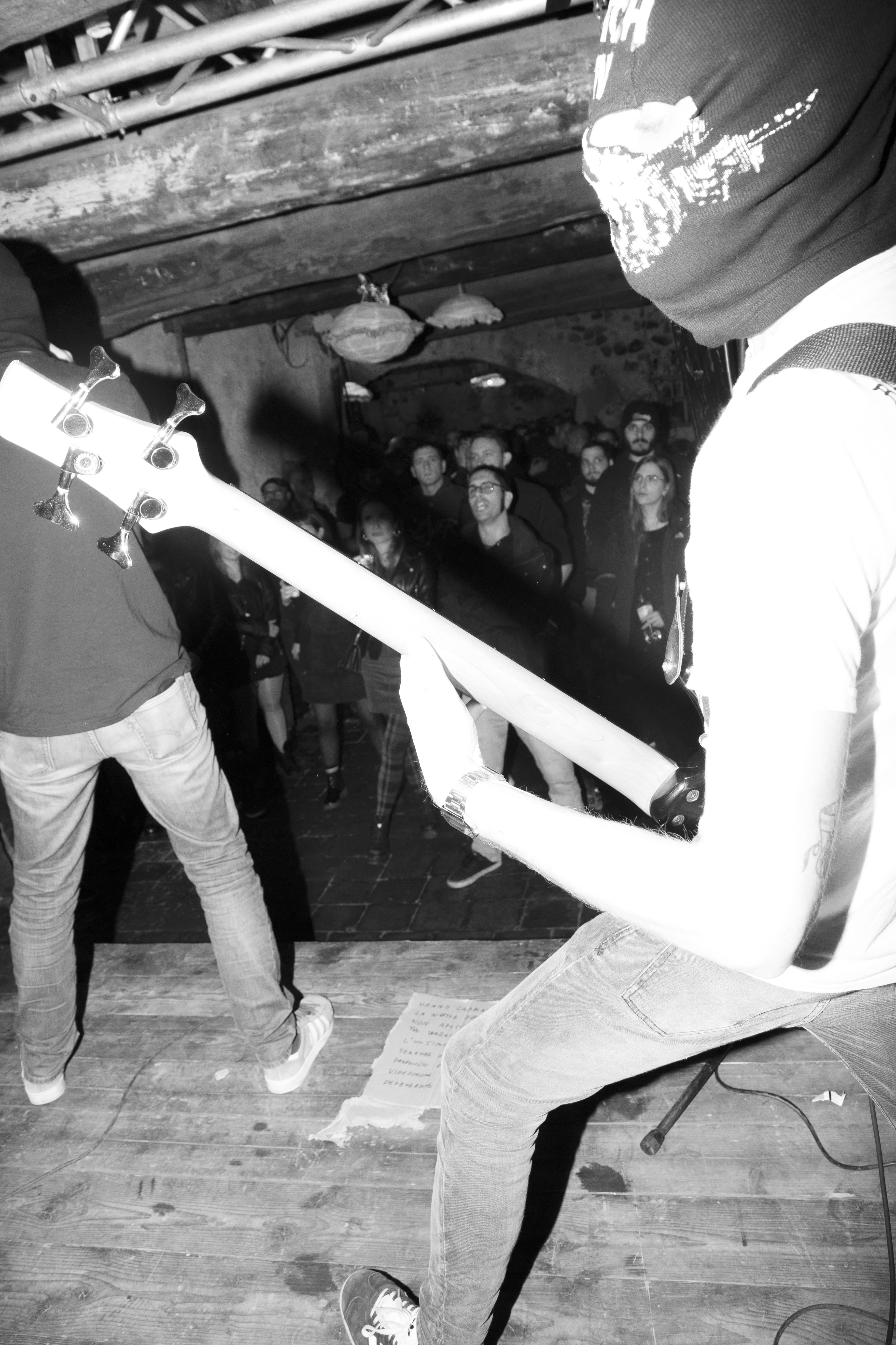 Discese le scalinate più temibili del centro Italia, sul palco ci sono The Unborn freschi di release di “Slasher“: parola eloquente per descrivere lo stile dei viterbesi incappucciati che mescolano ritmi Oi e street punk a riffoni heavy con testi ispirati all’adorato Horror e Sci-Fi ’80/’90 attualizzato alle mostruose vicende che viviamo quotidianamente.