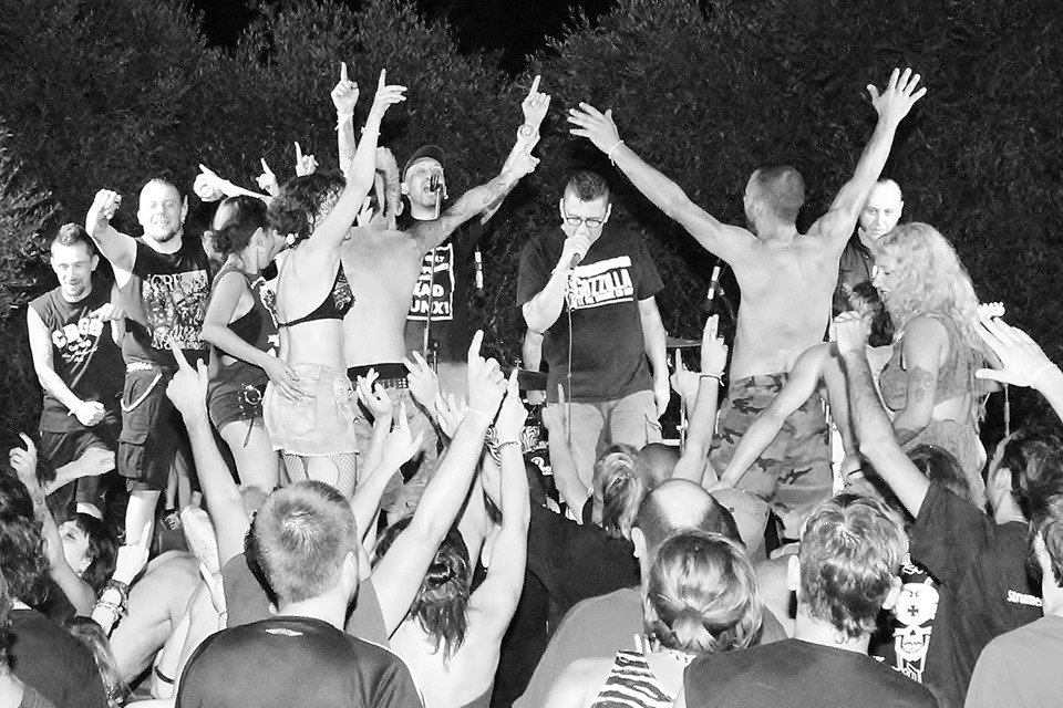 In un festival così variegato non poteva mancare il rap e perciò chi meglio dei 16 Monkeys Armata con il loro rap hardcore e i testi che esprimono il loro animo incazzato.
