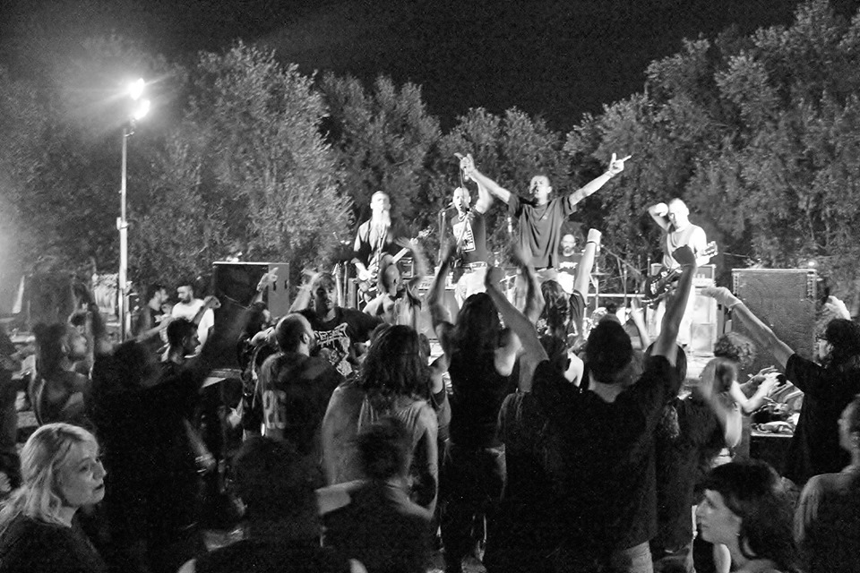 I primi tra i due a suonare sono gli Antidigos e nonostante siano già le 3 di notte, è ancora pienissimo di gente che poga cantando i testi molto amati dei loro amici di Bari che ormai sono un must di ogni concerto in Puglia