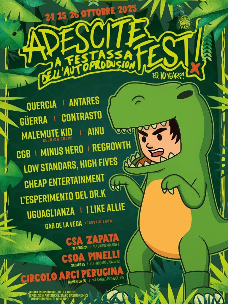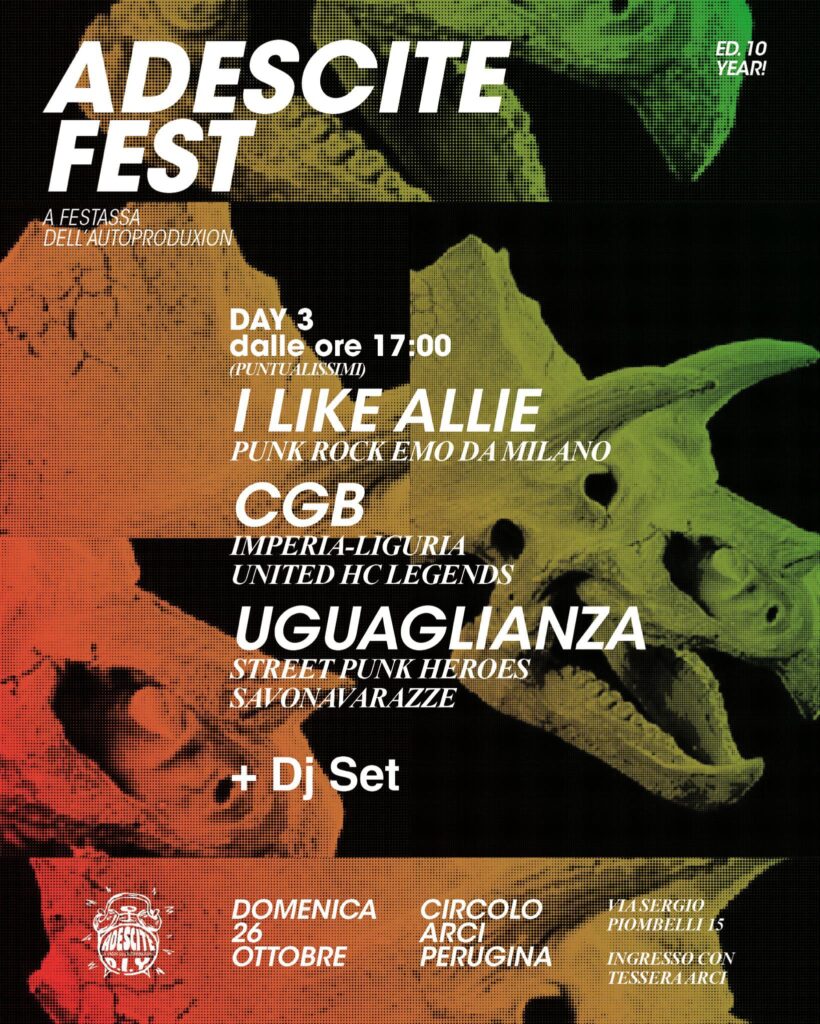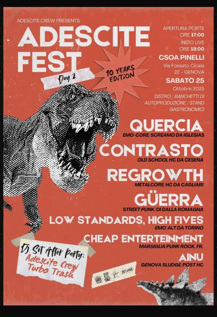 Il 24, 25, 26 ottobre 2025 si svolgerà il fest di Adescite con diverse band e banchetti di autoproduzioni in tre luoghi diversi di Genova. Questa sarà la decima edizione e abbiamo deciso di fare qualche domanda alla crew di Adescite sul fest, sulla città e sul loro collettivo. Ci vediamo al banchetto, noi ci saremo!