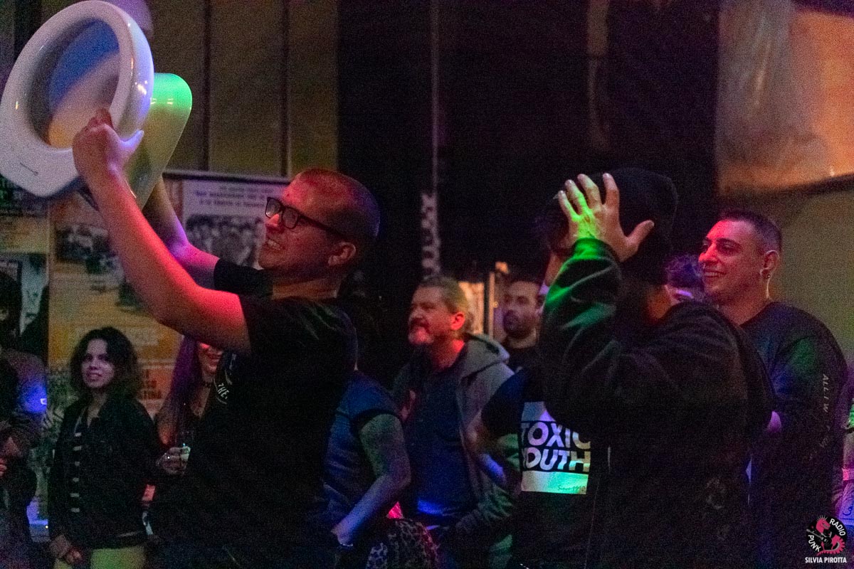 Passano la palla ai Beelzebeat, band di Helsinki o meglio dire Padova, fondata nel 2015. Unici nel loro genere, sono riusciti a fondere in maniera vincente grindcore e rockabilly. Cosa mi aspetto da ogni gruppo veneto? Ovvio, bestemmie e tanta ignoranza. Le mie aspettative, infatti, non sono state deluse. Ad un certo punto entra in scena anche un gabinetto, ebbene sì. Fa un giretto nel pit per poi essere distrutto. Forse l’idea di formare una band grindabilly è nata proprio su un cesso, d’altronde, è proprio su quello che si partoriscono le idee migliori…