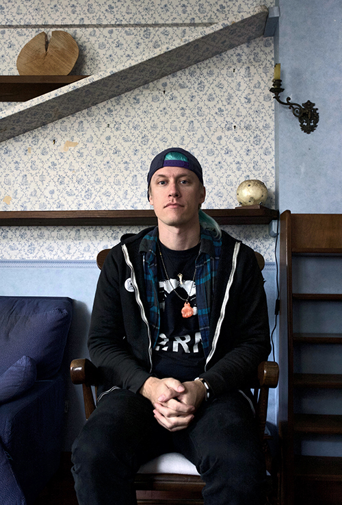 The people I photographed are people I crossed along my path: bands, visiting people who were staying overnight in my house or faces I’ve seen since I’ve been frequenting concerts. The idea was to make static portraits with a fixed background, which I had to modify often considering my frequent and obligatory change of residence.