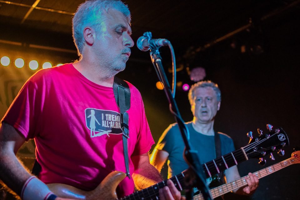 Ogni persona presente aiuta a spostare sedie e panche per il live imminente dei Kina. Non credo abbiano bisogno di presentazioni, quindi passiamo subito al concerto. Il palco ahimè non è dei migliori per poter fare foto, specialmente se non hai un obiettivo zoom. È stretto e lungo, quindi anche per i tanti presenti sarà difficile poter allungare l’occhio fino a Sergio. Accolti nuovamente da applausi e grida, i nostri cari Kina iniziano con “La forza del sogno”, lo spazio già pieno viene ulteriormente invaso dalla gente che era uscita per fumarsi una sigaretta. Faccio un paio di foto e mi metto di lato perché il bordello che si è creato è indescrivibile. Si prosegue con brani come: “Sfoglio i miei giorni”, “Mondo mai visto”, “Camminando di notte”, “Cosa farete”, “Sabbie mobili” fino ad arrivare alla fatidica “Questi anni”. Qua si sono scatenati anche i muri. Ci sono più persone che fanno stage diving di quelle con i piedi per terra. Concludono con due chicche: “Vivere odio” che è una delle mie preferite e “Nessuno schema”.