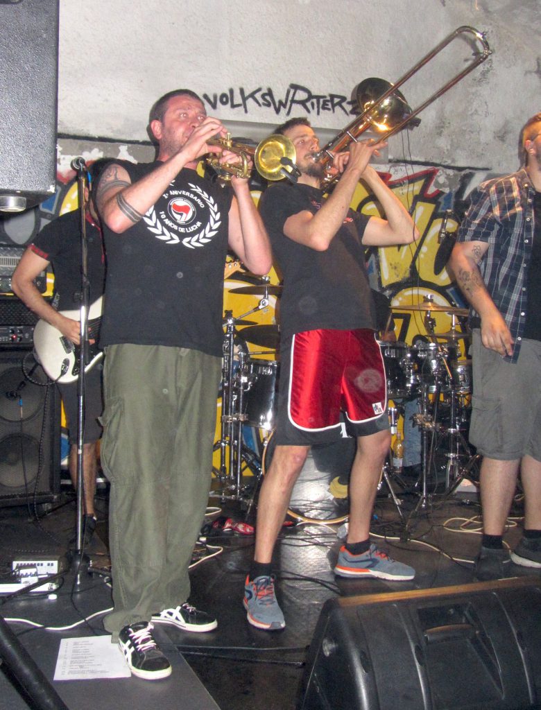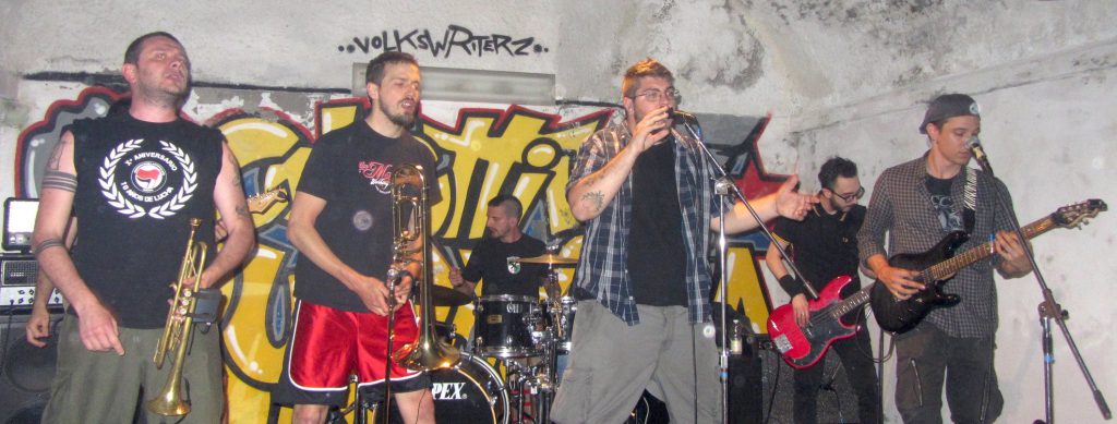 Entrano quindi in scena gli Skassapunka, che quest’anno festeggiano il decennale di attività. Partiti da Milano, la “Crazy Town” di cui lucidamente criticano la disumanizzazione in nome della corsa al capitale, hanno saputo farsi conoscere e apprezzare in mezza Europa nonostante il coraggioso utilizzo della lingua italiana nei testi. A volte mi capita di vedere, all’estero, in concerti di altri gruppi, qualcuno con la loro maglietta. Lo guardo e sorrido di intima soddisfazione. Ok la pizza, ma abbiamo anche altro di buono da esportare.