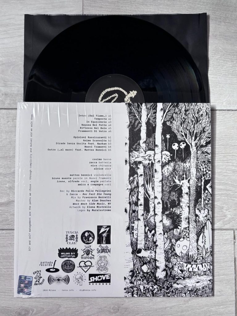 The album “Anime Sconvolte” is a wonderful collective work with a very strong personality, and let us say that an album like this was long overdue, one of those albums that is very difficult to pin down and that in the end makes you say that it resembles nothing you have heard before. These 11 tracks also contain several guest collaborations such as with Irene and Alfredo from Narkan, speech by Angie, cello in the Outro by Matteo Bennici. While the recordings are by Rec Fast Die Young of which Tenia’s own drummer Zacca is a part, along with Riccardo Pelle Pellegrini, the mix is by Francesco Borrelli, the master by West West Side Music and the artwork, simply stunning is by Elena Mistrello