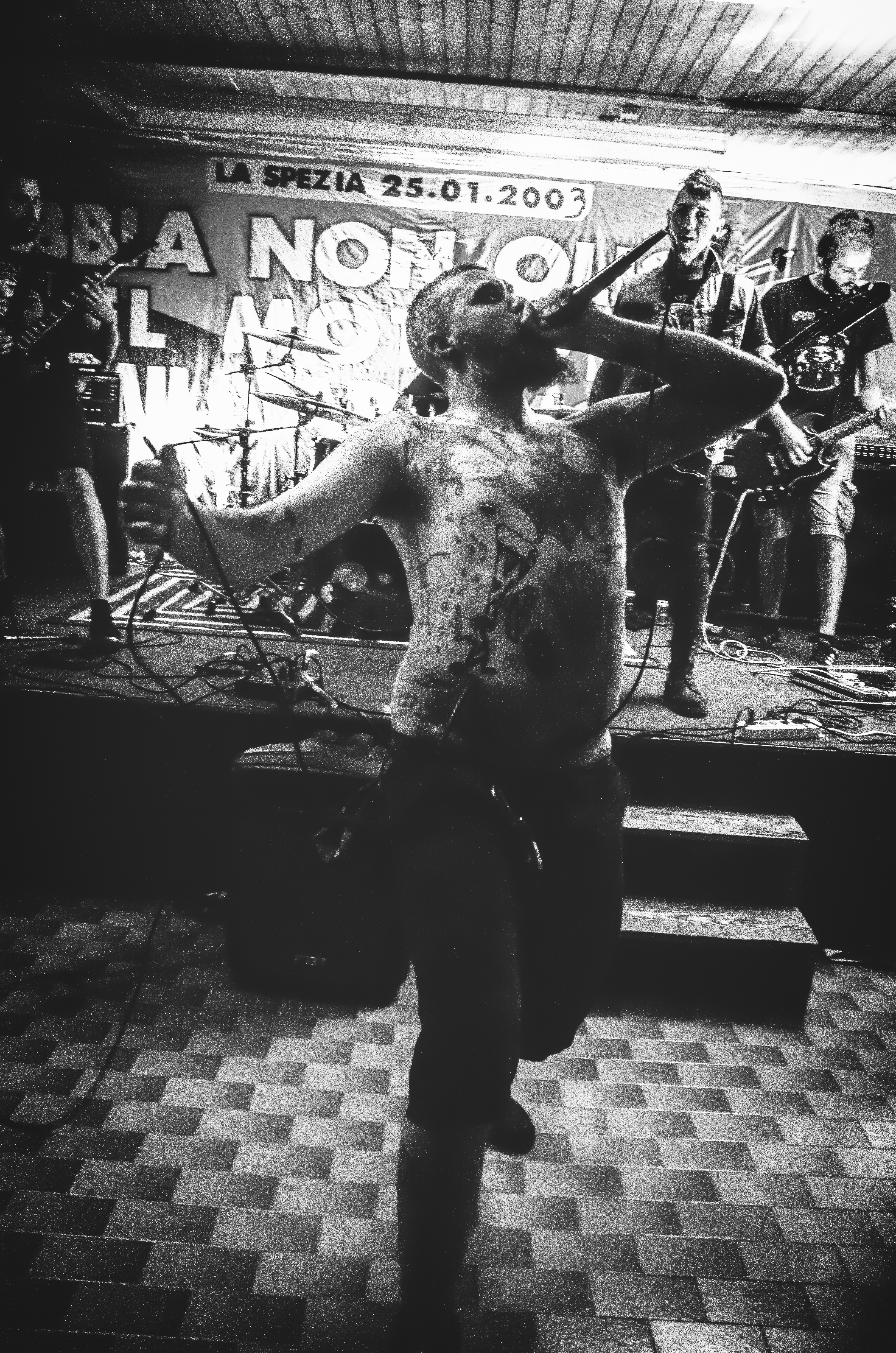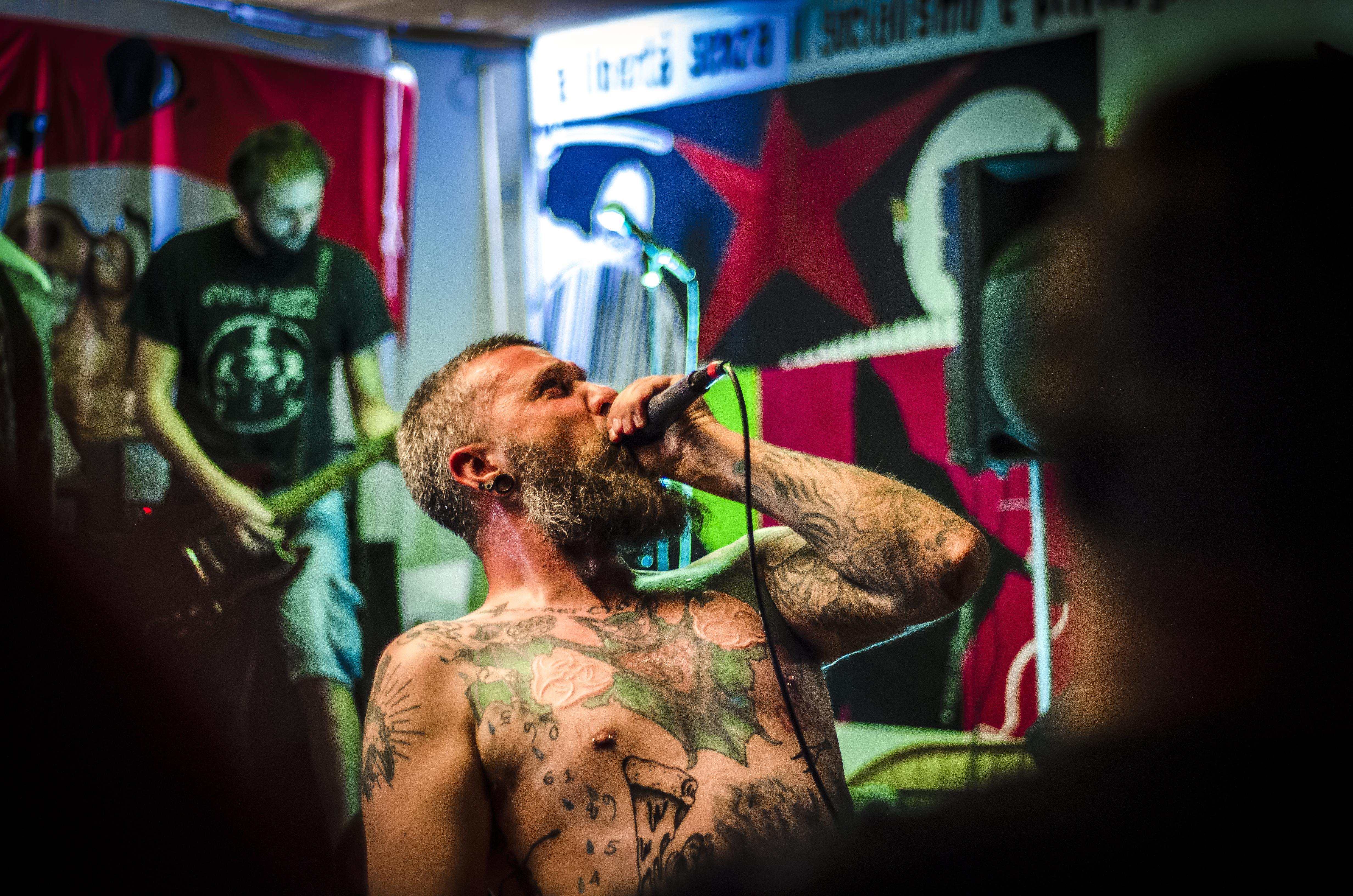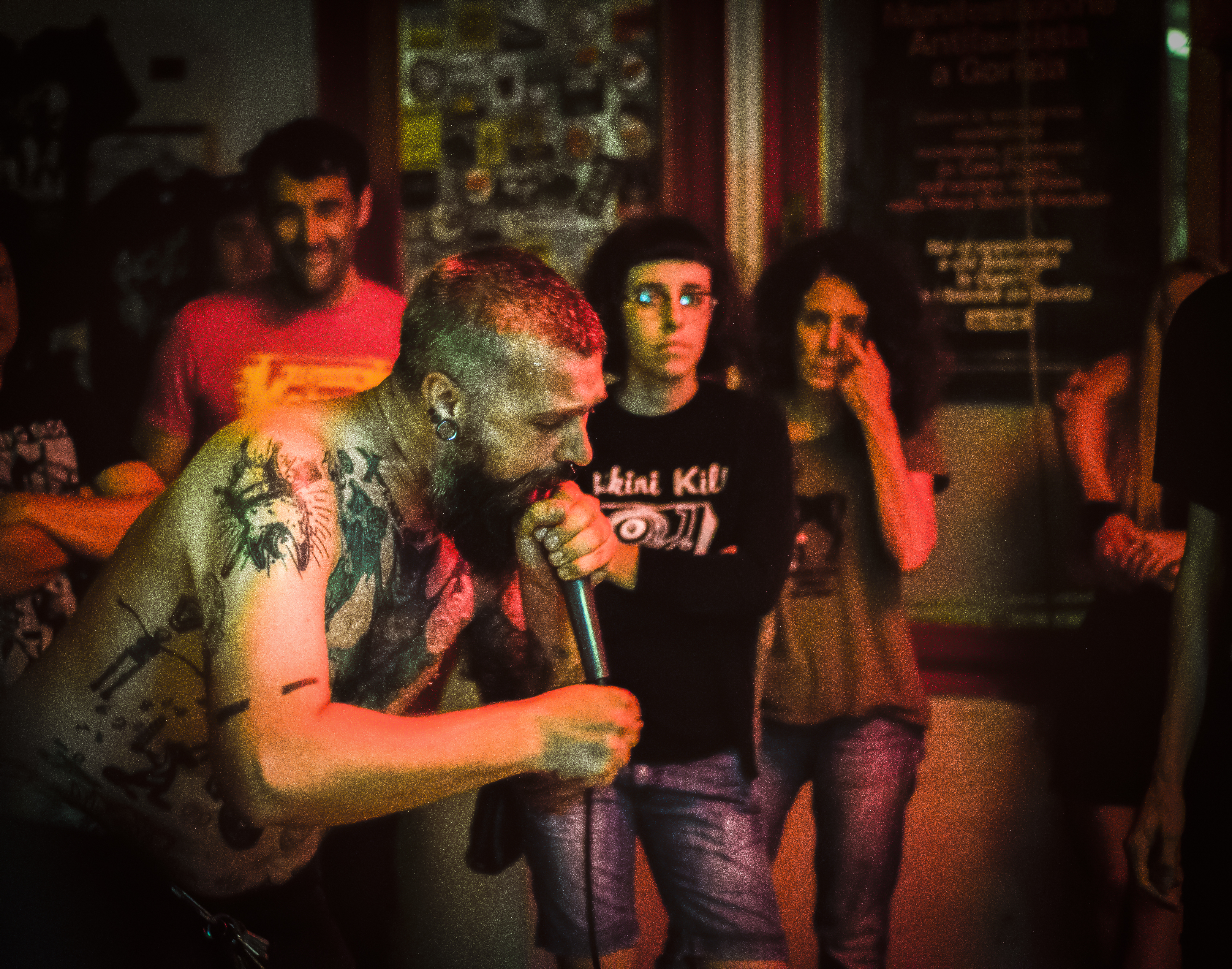At the Prefabbricato, anarchic social space in which you can engage and meet, there’s always time for a beer, have a look to the books and albums of the merch and talk a bit before the start of the gig. Opening the set we find The Nutries, hardcore band from Vicenza that goes incredibly fast, with violent sounds and a bass guitar which gives a war rhythm: even if it’s not my favourite kind of punk, I have to say it: it was a pleasure listen to them!