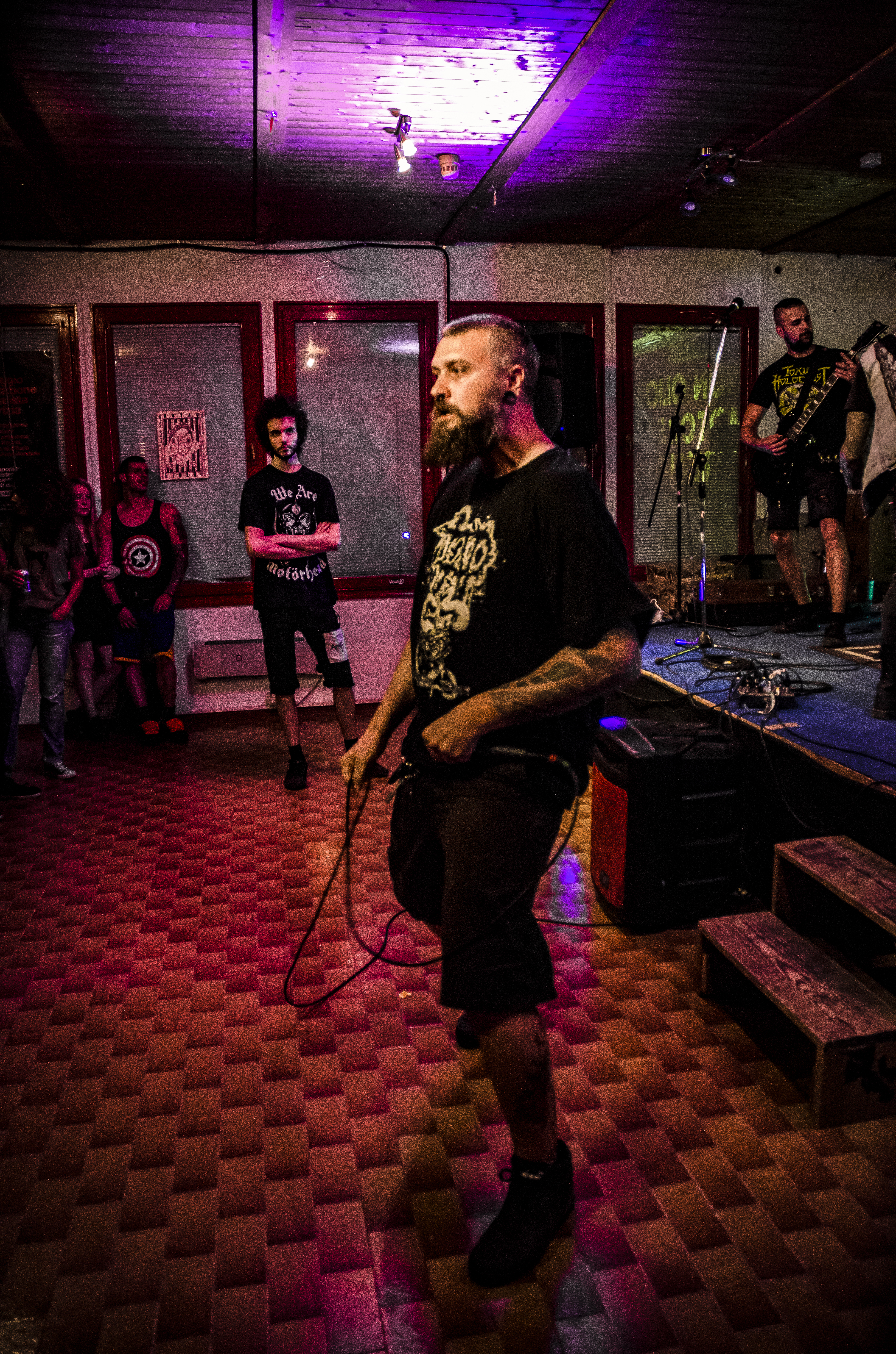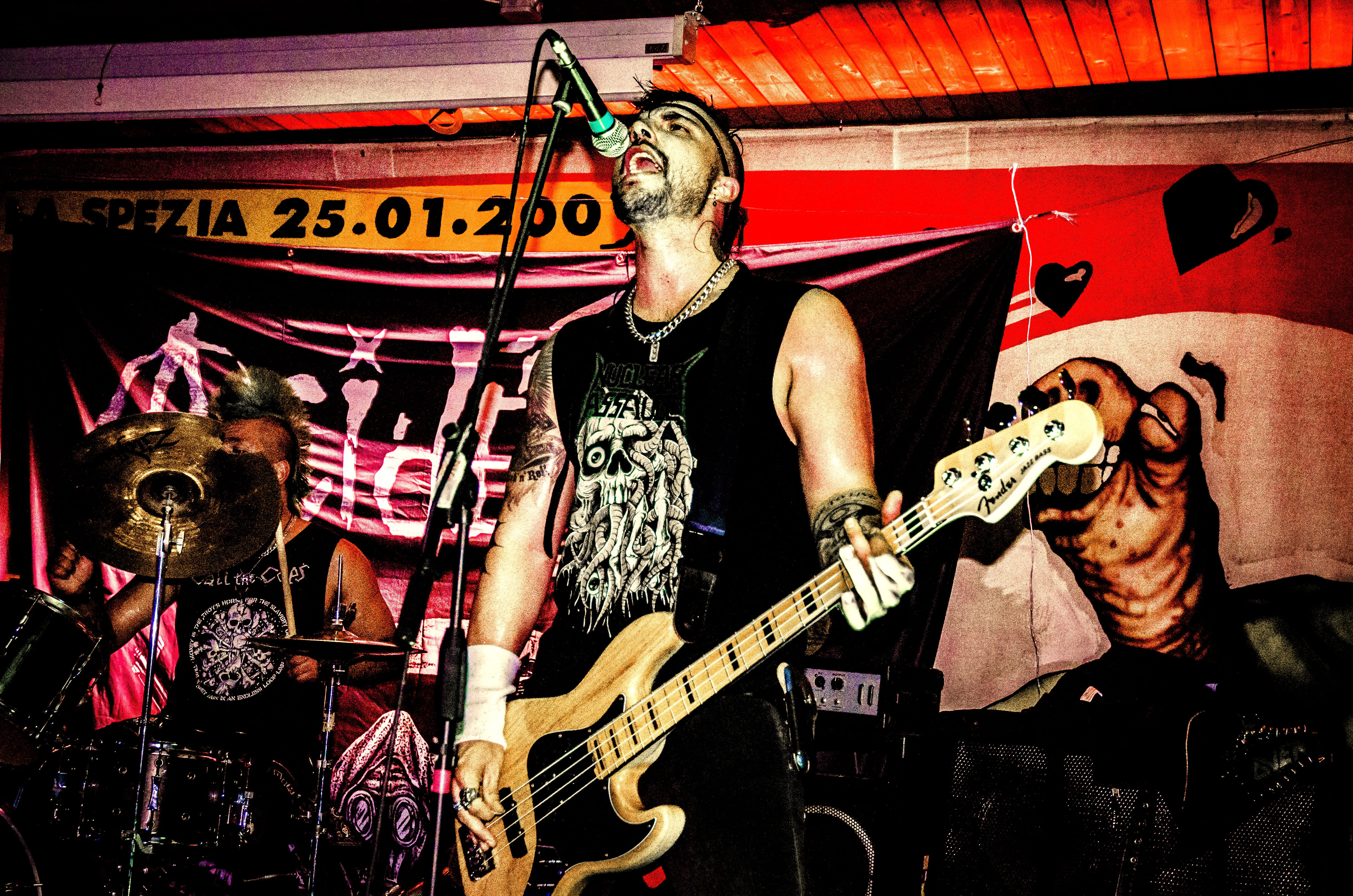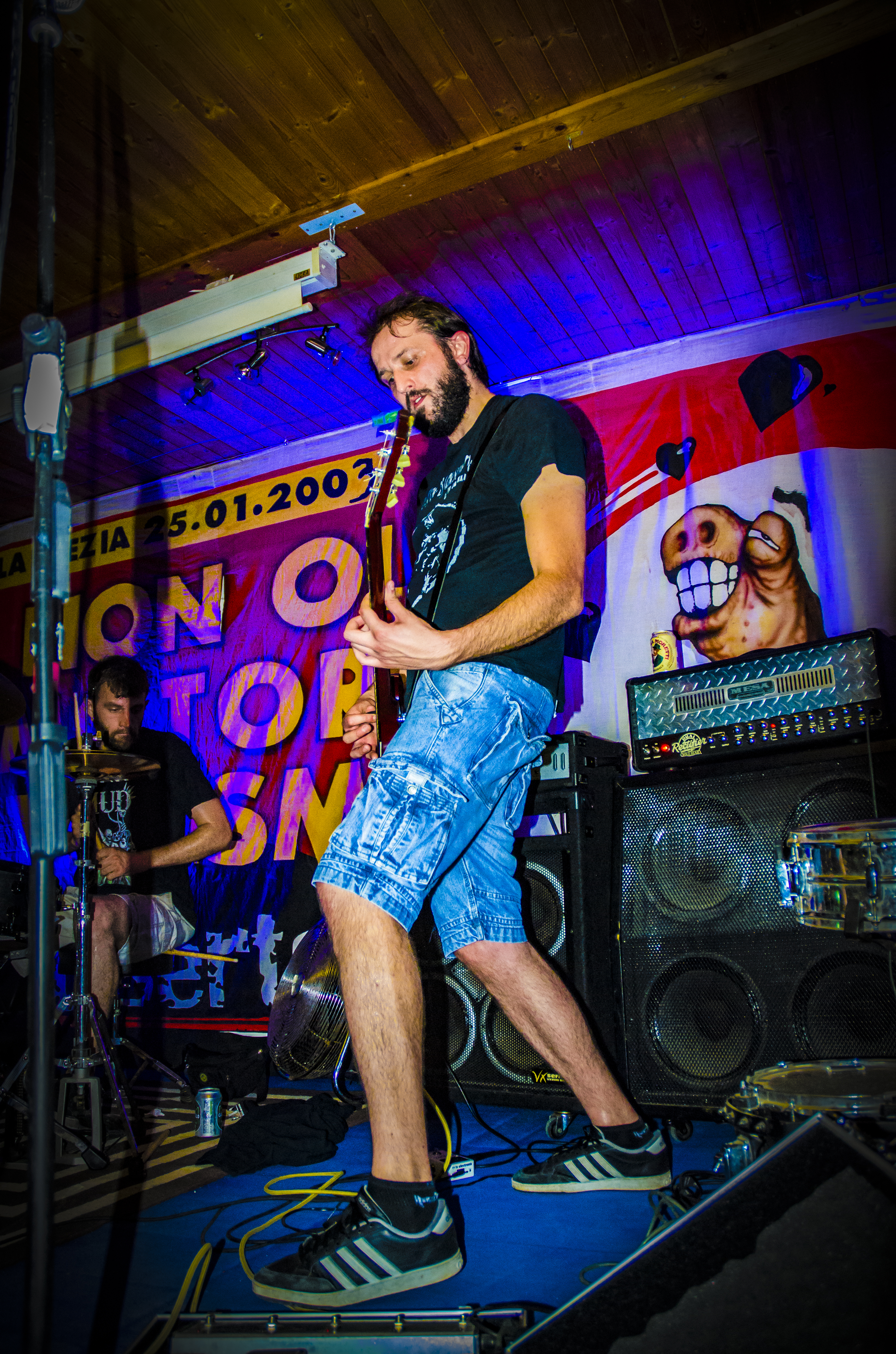 At the Prefabbricato, anarchic social space in which you can engage and meet, there’s always time for a beer, have a look to the books and albums of the merch and talk a bit before the start of the gig. Opening the set we find The Nutries, hardcore band from Vicenza that goes incredibly fast, with violent sounds and a bass guitar which gives a war rhythm: even if it’s not my favourite kind of punk, I have to say it: it was a pleasure listen to them!